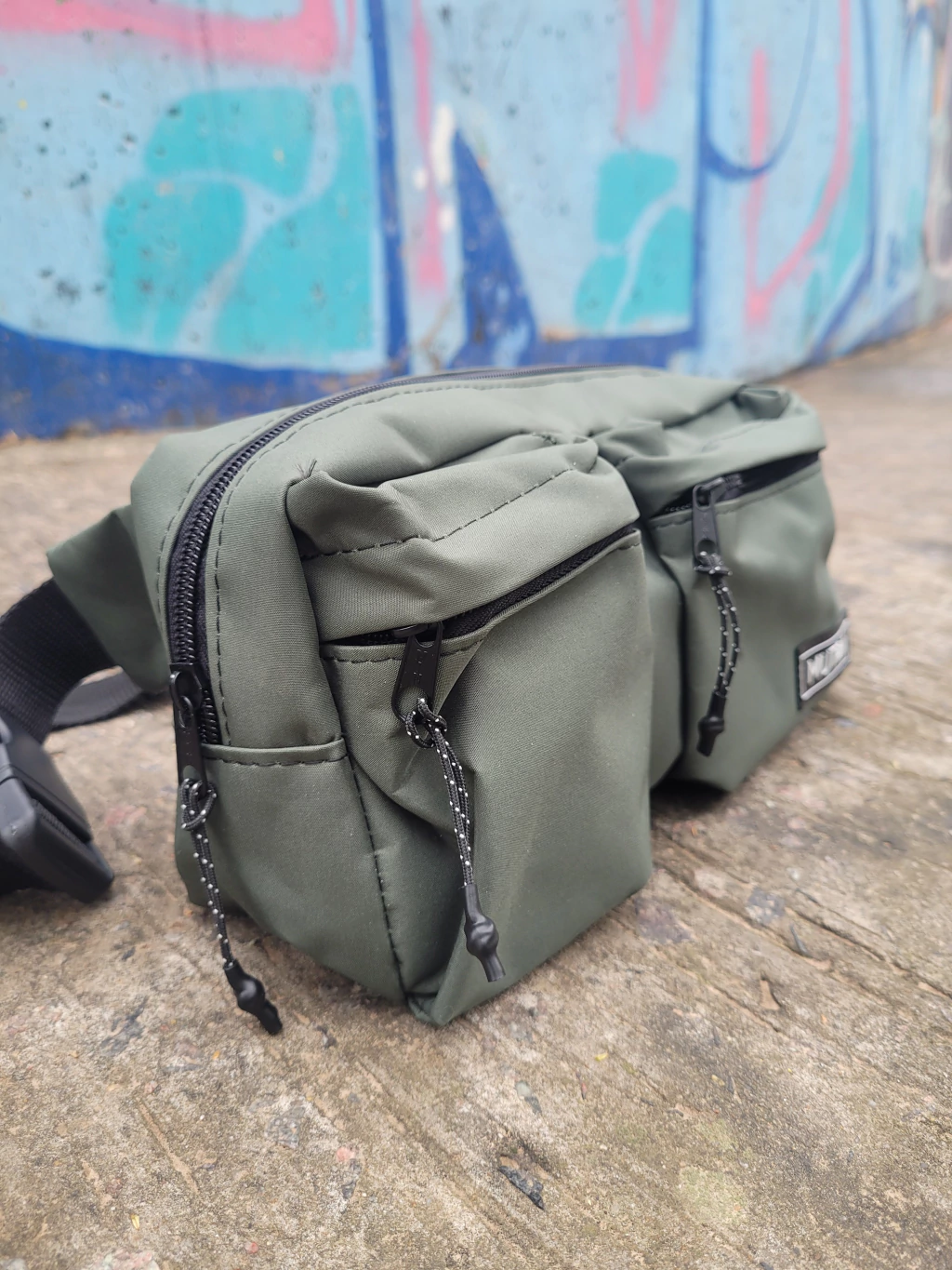 Riñonera con CORREA REGULABLE y hebillas de plastico, confeccionada en MICROFIBRA VERDE con FORRADO INTERNO, lo que la convierte en un producto súper duradero y de máxima calidad.